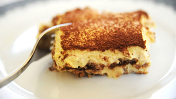 In una profila adagiare i savoiardi imbevuti di caffe’, versa il composto cremoso, una spolverata di cacao.Mettere in frigo per almeno 3 h.
