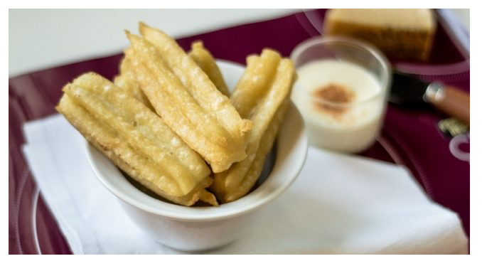 Scolare per bene i churros salati e serviteli tiepidi cospargendoli di formaggio fuso a piacere.
