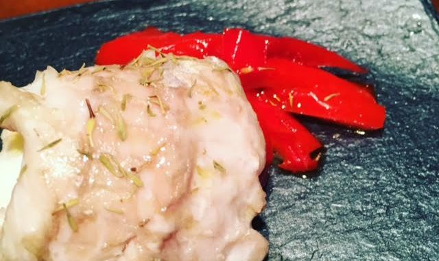 Servire accompagnando l’involtino con i peperoni e guarnire con un po di timo