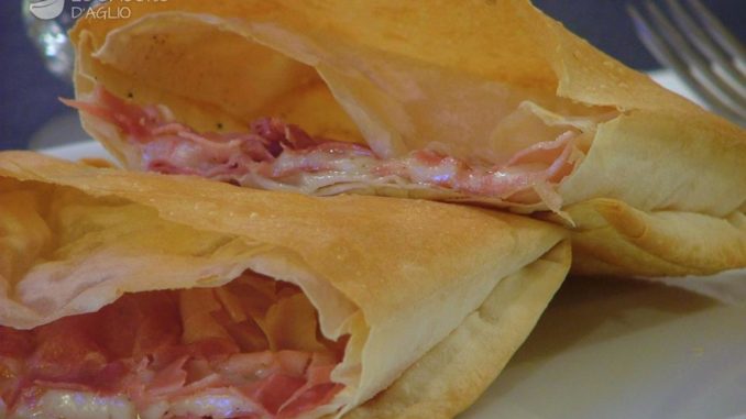 Stendere un foglio di pasta fillo e spennellarlo da un lato con l’olio, quindi sovrapporre un altro foglio.Mettere al centro della pasta metà prosciutto cotto, cospargerlo con metà della fontina, una macinata di pepe ed una di noce moscata.Chiudere a pacchetto ripiegando i quattro lati.Mettere i pacchetti così preparati su una teglia coperta da un foglio di carta da forno e spennellarli con olio Infornare a 200°C 12 min.
