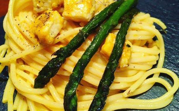 In una ciotola versare l’acqua di cottura in cui si è sciolto la curcuma (o per un sapore meno forte lo zafferano) , il pecorino e cominciare a mescolare , aggiungere il grana ed il pepe , deve diventare una crema , versare gli spaghetti e amalgamare il tutto .