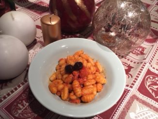 Gnocchi con acciughe olive e guanciale