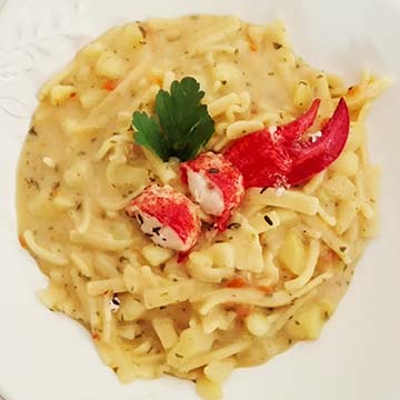 Quando manca un min al termine, unire l’astice, completare la cottura, togliere dal fuoco e mantecare con la provola.