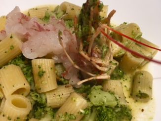 Incontro a 3 : spaghettone con crema di cavolo all’aglio polpa di riccio e peperone corno