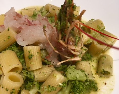 Cuocere la pasta e scolarla qualche min prima , versarla in padella , aggiungere l’acqua di cottura , amalgamare il tutto e completare la cottura . Spegnere ed aggiungere i gamberi sminuzzati .