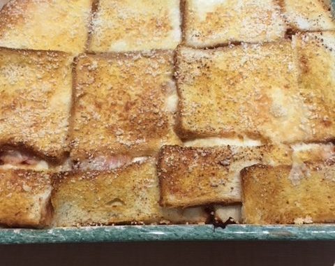 Versare il latte in una ciotola aggiungendo un po di sale, bagnare leggermente le fette di pan carrè e sistemarle sul fondo della pirofila, adagiare le fette di prosciutto e del fiordilatte tagliato a pezzetti , proseguire fino ad esaurire gli ingredienti.