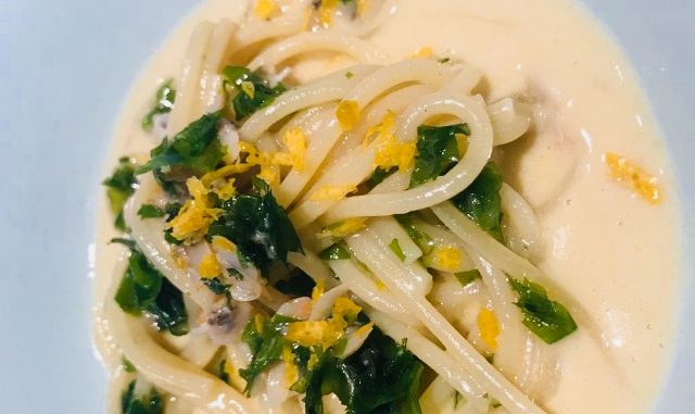 Impiattare mettendo sul fondo un po di maionese , la pasta e guarnire con un po di zeste di limone