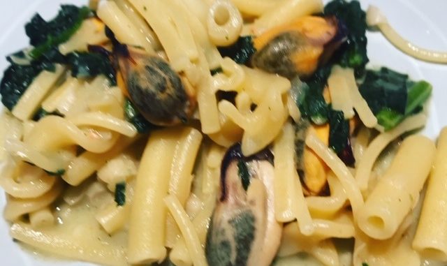 All’acqua di cottura del cavolo aggiungere un po di acqua delle cozze portare a bollore e lessare la pasta .