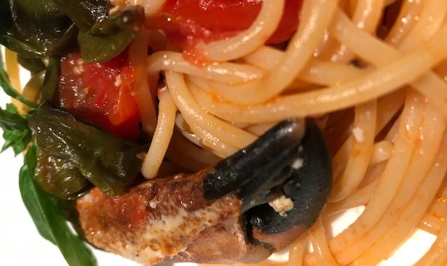In una padella soffriggere uno spicchio di aglio con olio evo , aggiungere i pomodori ed il peperoncino , aggiustare di sale Dopo 5 min aggiungere i granchi schiacciati (con l’aiuto di una pinza), lasciare cuocere .