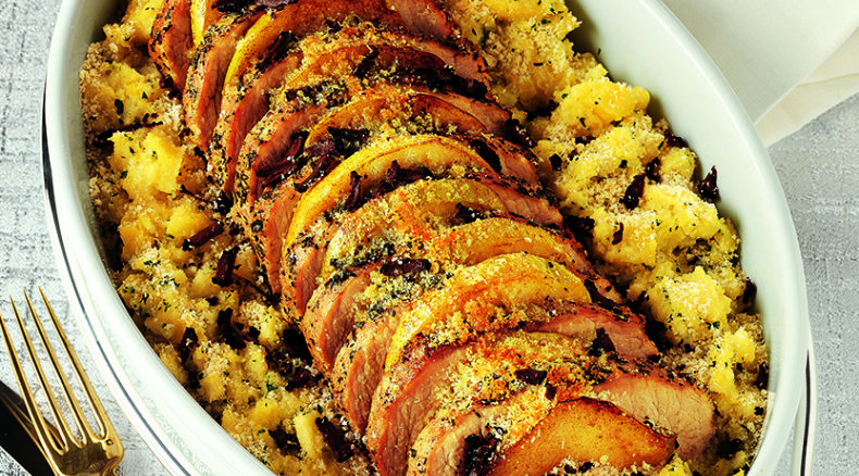 Maiale arrosto con mele e purè