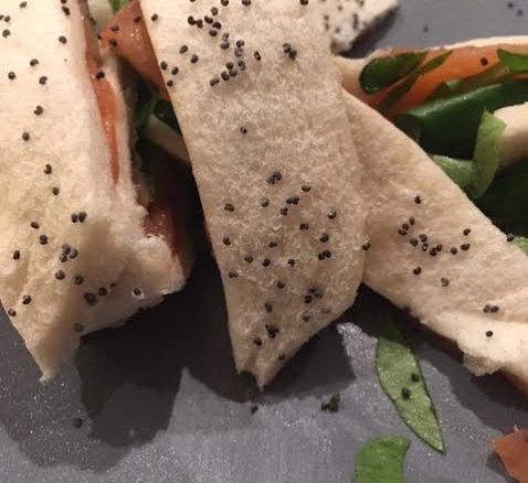 Rotolo di salmone, songino e semi di papavero